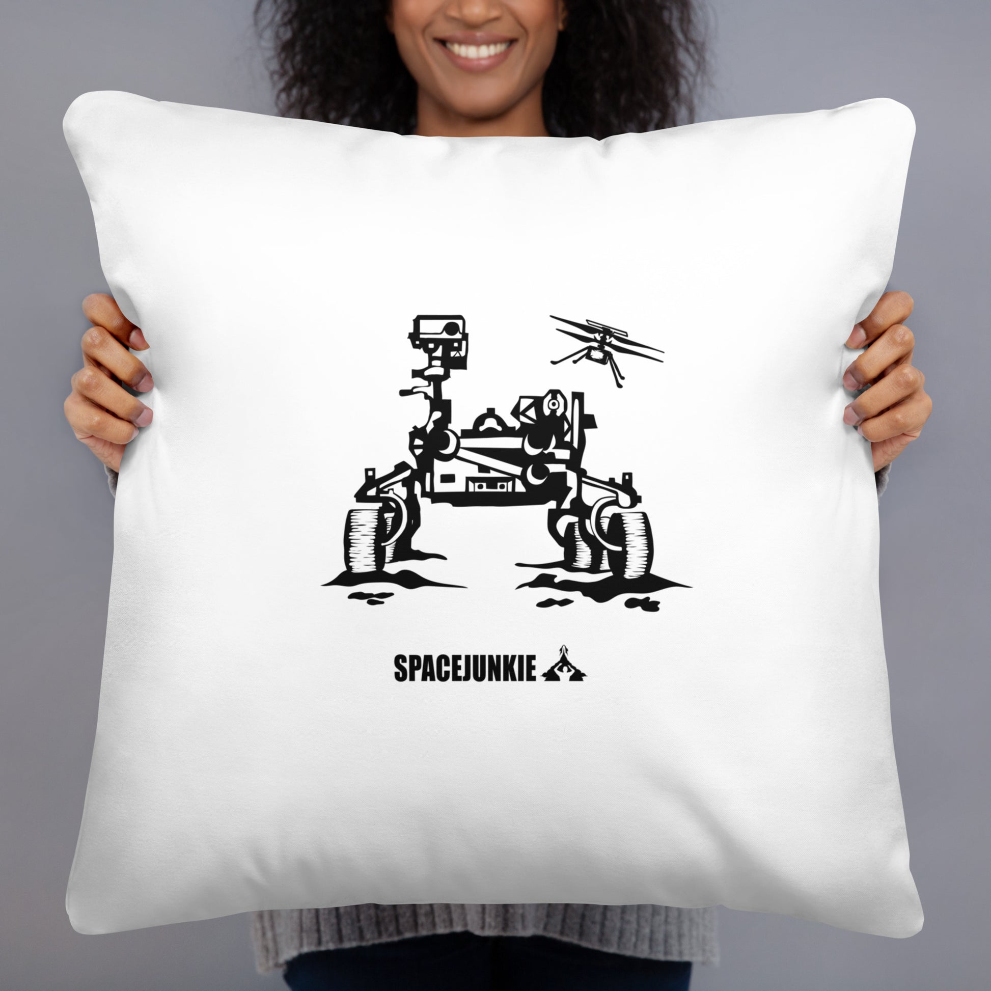 Az ikonikus Perseverance marsjáró mostmár párnahuzaton is képes feldobni a szobád. Egyik oldalán a marsjáró, másikon a Spacejunkie logó található. Puha és gépben mosható tok alaktartó betéttel.